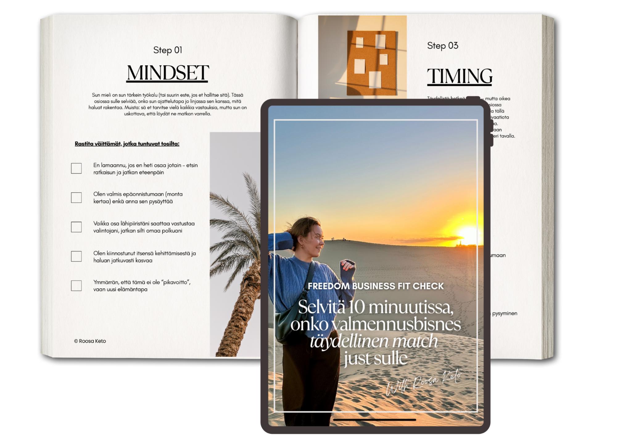 Jos susta tuntuu, että nämä materiaalit ovat vasta alkua ja haluat oikeasti alkaa rakentaa omaa kevyttä & kannattavaa digibisnestä, niin Freedom Builder™ -valmennus on just sua varten.